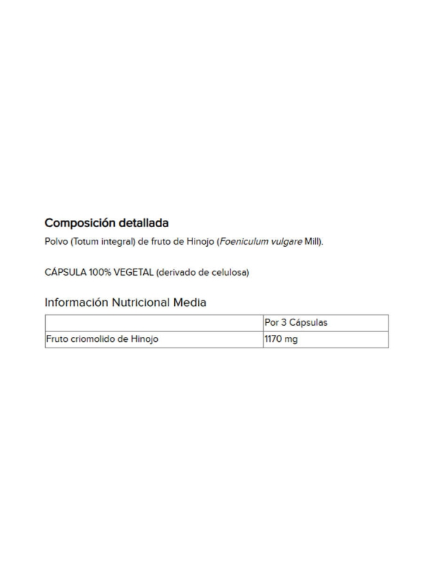 Fruto criomolido de Hinojo (Foeniculum vulgare Mill). Recubrimiento de origen vegetal: hidroxipropilmetilcelulosa.