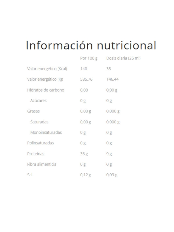 Tomar la cantidad indicada por el fabricante (normalmente un vasito dosificador diario), preferiblemente con el estómago vacío o a la misma hora cada día para obtener mejores resultados. Agitar antes de usar.