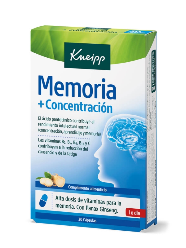 Kneipp memoria + concentración es un complemento alimenticio rico en vitaminas y minerales que permiten mantener el rendimiento cognitivo en valores normales.