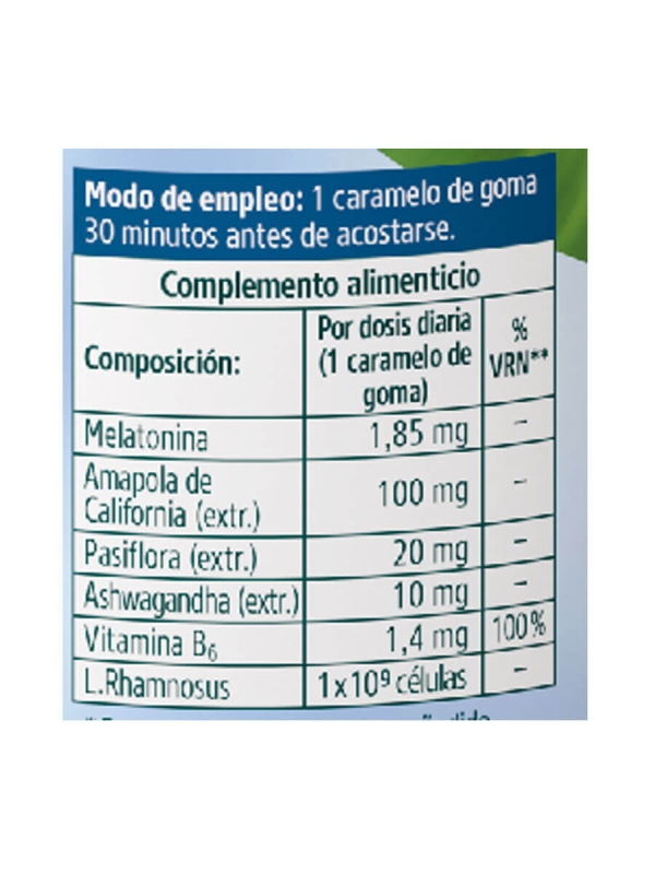 Melatonina, Pasiflora, Amapola de California, Vitamina B6, Lactobacillus Rhamnosus