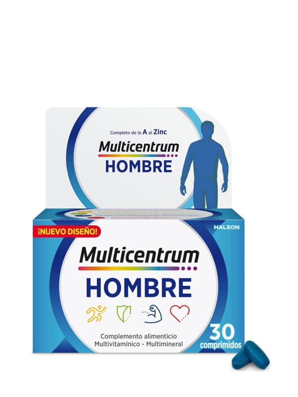 Multicentrum indicado para las necesidades de los hombres, que requieren un aporte de energía mayor por lo que la formula de Multicentrum Hombre, se ha reforzado las cantidades de algunas vitaminas del complejo B que ayuda al metabolismo energético.