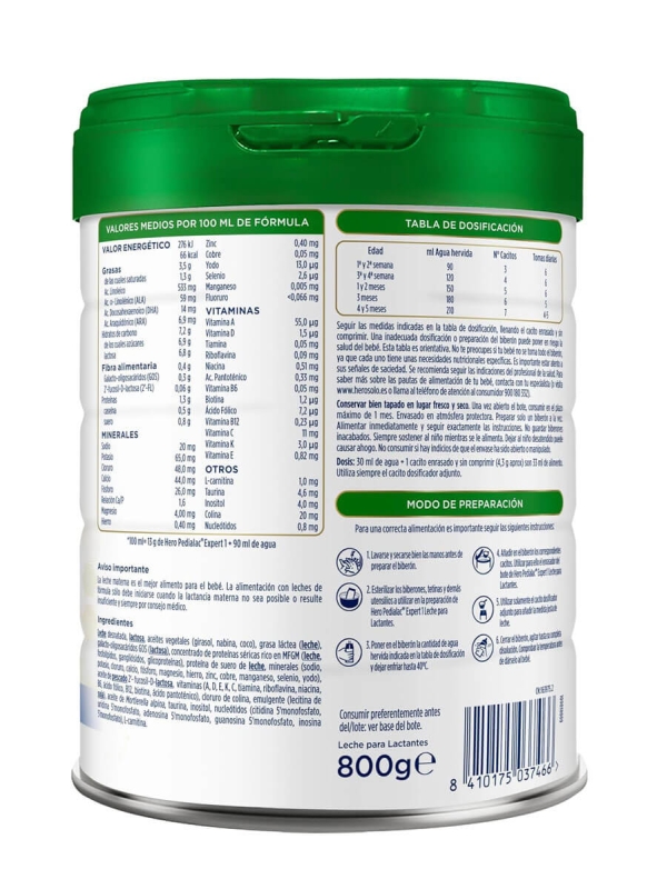 Hero® Baby Pedialac 1 Leche de Inicio en 800 gramos, es un extraordinario suplemento nutricional que incluye los ácidos grasos DHA y ARA junto a otro conjunto de nutrientes clave para el sano desarrollo del bebé desde el primer día.