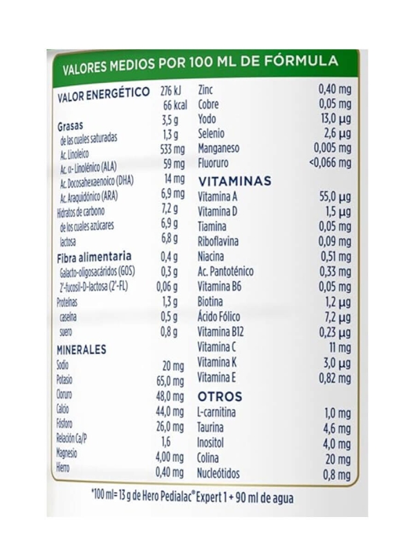 Alguno de los componentes en la beneficiosa fórmula de Pedialac 1, son galacto-oligosacáridos GOS, proteínas, nucleótidos, vitaminas y minerales. Sin dudas, un producto diseñado para garantizar la más completa nutrición del lactante.