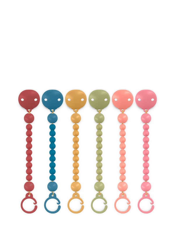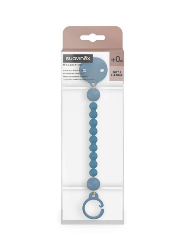 El Broche Suavinex Selection es un sujeta-chupetes de diseño moderno, compuesto por bolitas de silicona en colores intensos. Está fabricado en una sola pieza para mayor seguridad, ofreciendo una pinza de máxima sujeción que evita que el chupete caiga o se pierda. La silicona suave proporciona una textura agradable, actuando como un elemento sensorial para el bebé. (Se vende por unidad).