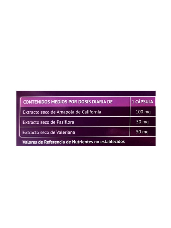 Extracto seco de Amapola de California, extracto seco de Pasiflora, extracto seco de Valeriana.