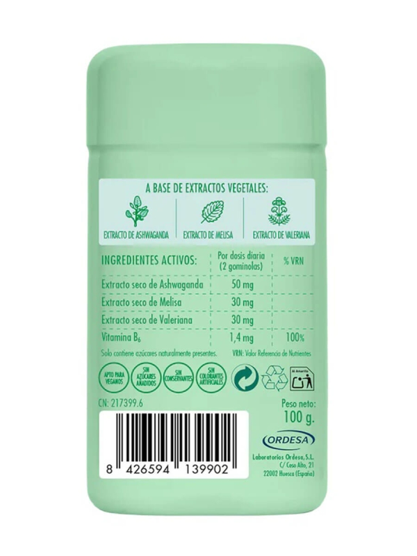 Extracto de Ashwanganda, extraacto seco de Melisa, extracto seco de Valeriana, Vitamina B6.
